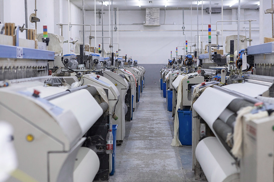 Polyester-bavlněná kusově barvená manšestrová tkanina